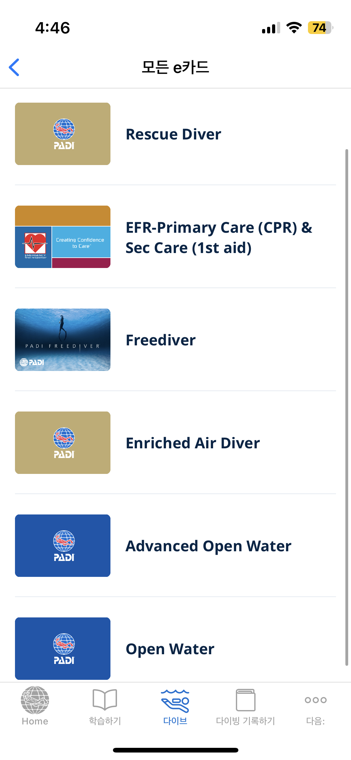 2. 이론교육 : PADI e-러닝을 통해 레스큐과정과 ERF과정 모두 진행할 수 있습니다. 레스큐는 5개의 단락으로 되어 있으며 동영상을 통해 이해하기 쉽게 되어 있는데요. 버디와 함께하는 모습을 보아서 그런지 혼자 레스큐 교육을 받는 것이 조금 쓸쓸했습니다. 각 단락에는 간단한 퀴즈가 함께 있고, 마지막엔 오픈워터, 어드밴스드오픈워터처럼 지식 복습을 할 수 있는 장이 확인됩니다. 마무리로는 필기시험까지 완료하면 담당 강사에게 확인해달라고 하면 됩니다. 공부하다가 궁금한 점은 강사님께 여쭤보며 공부했고, 과정에서 나오지 않는 비상시 사용하는 약의 정확한 이름이나 꿀팁들도 강사님이 알려주셨습니다.