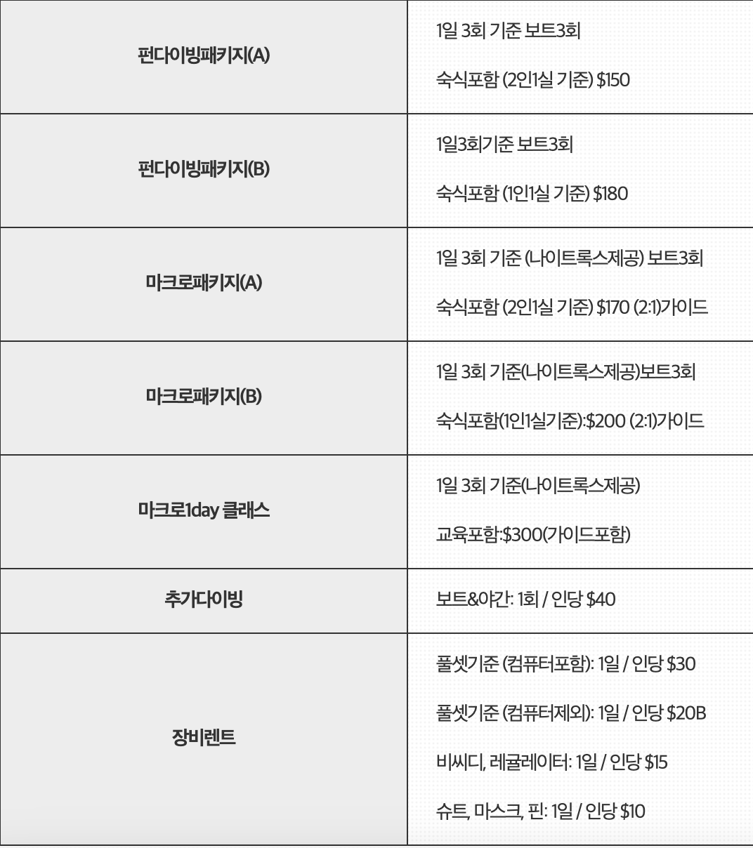 - 다이브엑스 다이브 리조트 다이빙 비용