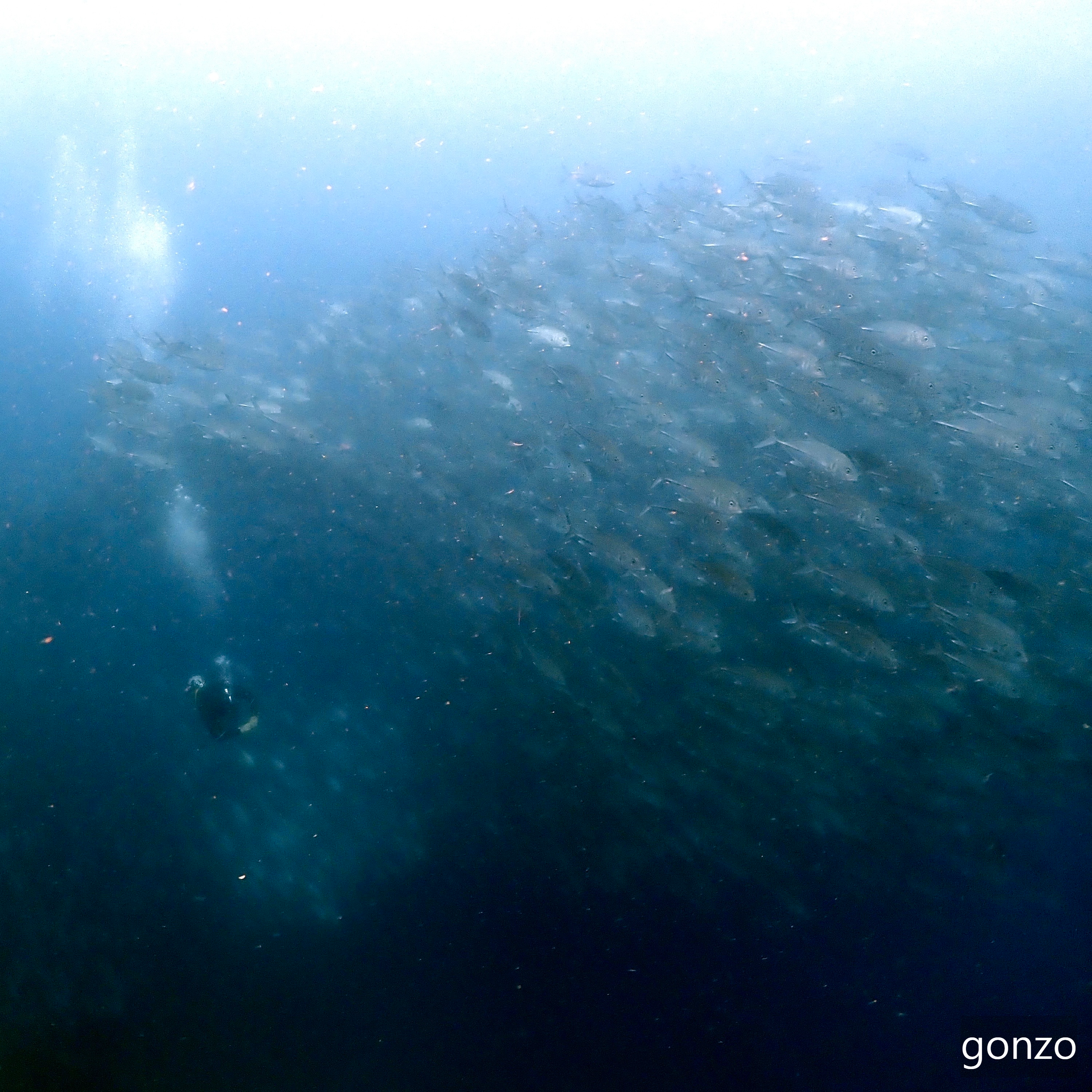 저를 기준으로 왼쪽 편에 잭피쉬들이 있어서 엄청 가까이서 봤다고 기분 좋다는 표시를 하려고 버디들이 있는 오른쪽으로 고개를 돌리는 순간! 뒤에서 함께 오던 잭피쉬들이 홍해를 가르듯 저를 중심으로 갈라졌다가 다시 합쳐지더라고요. 영상으로 확인하니 잭피쉬 스쿨링 그 사이에 5초 정도 있었던 것 같아요. 충격적인 경험이 잊히지가 않네요. 지금도 초흥분 상태! 그 뒤로 만난 바라쿠다떼까지. 정말 다이버들의 천국인가 싶더라고요.