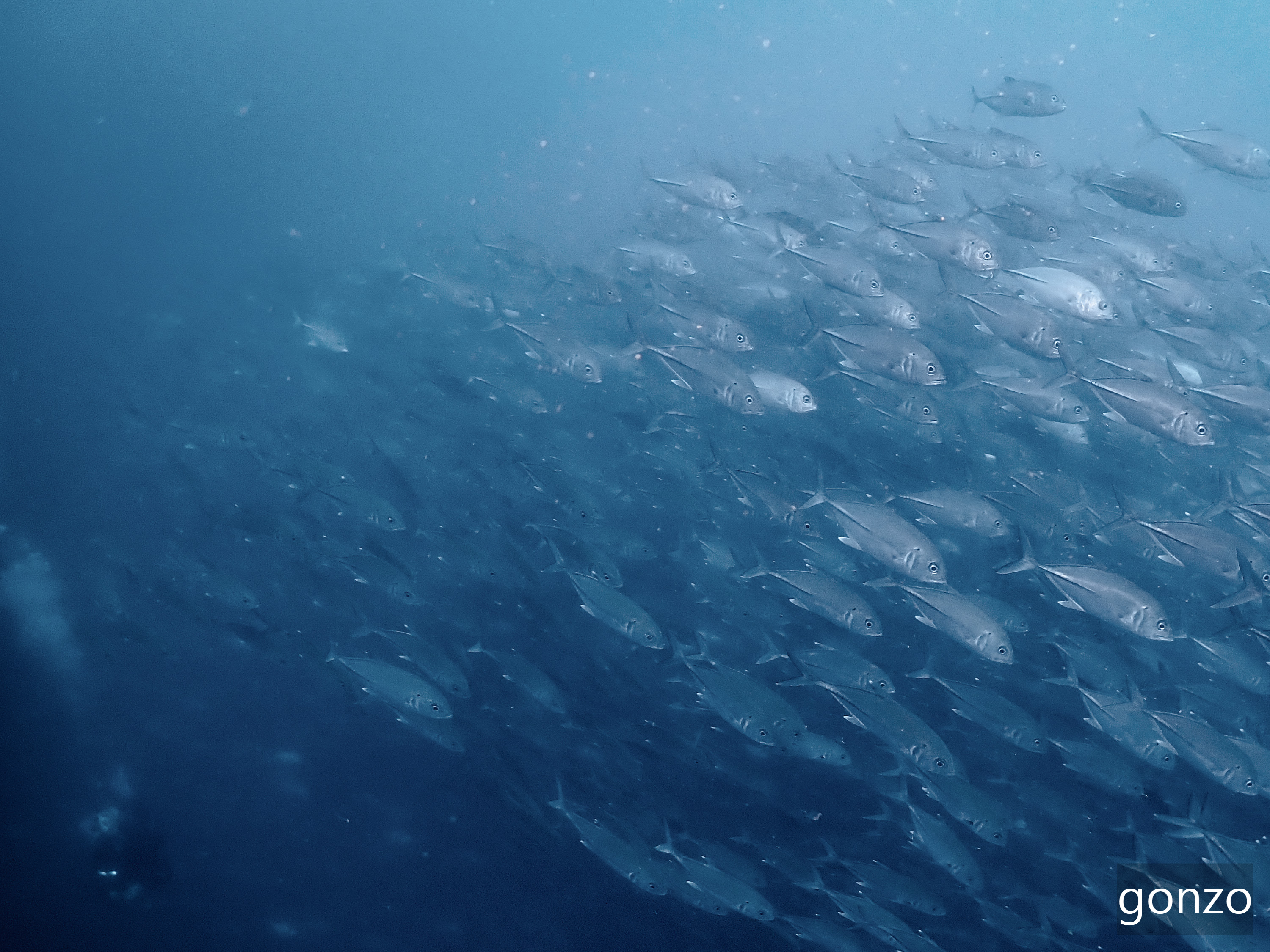 잠시 다이빙을 하다 사장님이 회색의 거대한 무언가를 보라고 가리켰는데요. 정말 커다란 GT, 자이언트 트래발리를 만났습니다. 이렇게까지 큰 GT는 처음이라 돌고래인 줄 알았어요. 1시간의 다이빙타임을 기록했지만 정말 출수하기 싫더라고요.