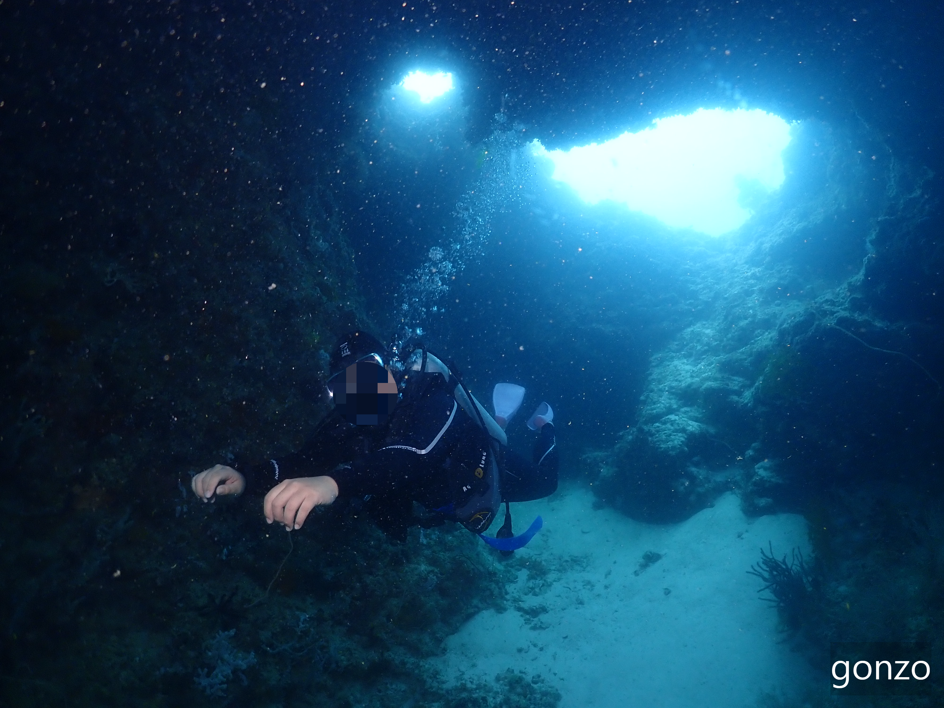 -Arco : 오션어스에서 다이빙을 하면서 가장 좋았던 점은 앞바다에 아르코 포인트가 있다는 점이었습니다. 위에서 아래로 통과할 수 있는 동굴을 지날 때에 올라오는 공기 방울이 올라가면서 그 위의 지면에 공기 방울이 조금씩 올라와 아름다운 광경을 연출해 사진을 찍을 수 있습니다.