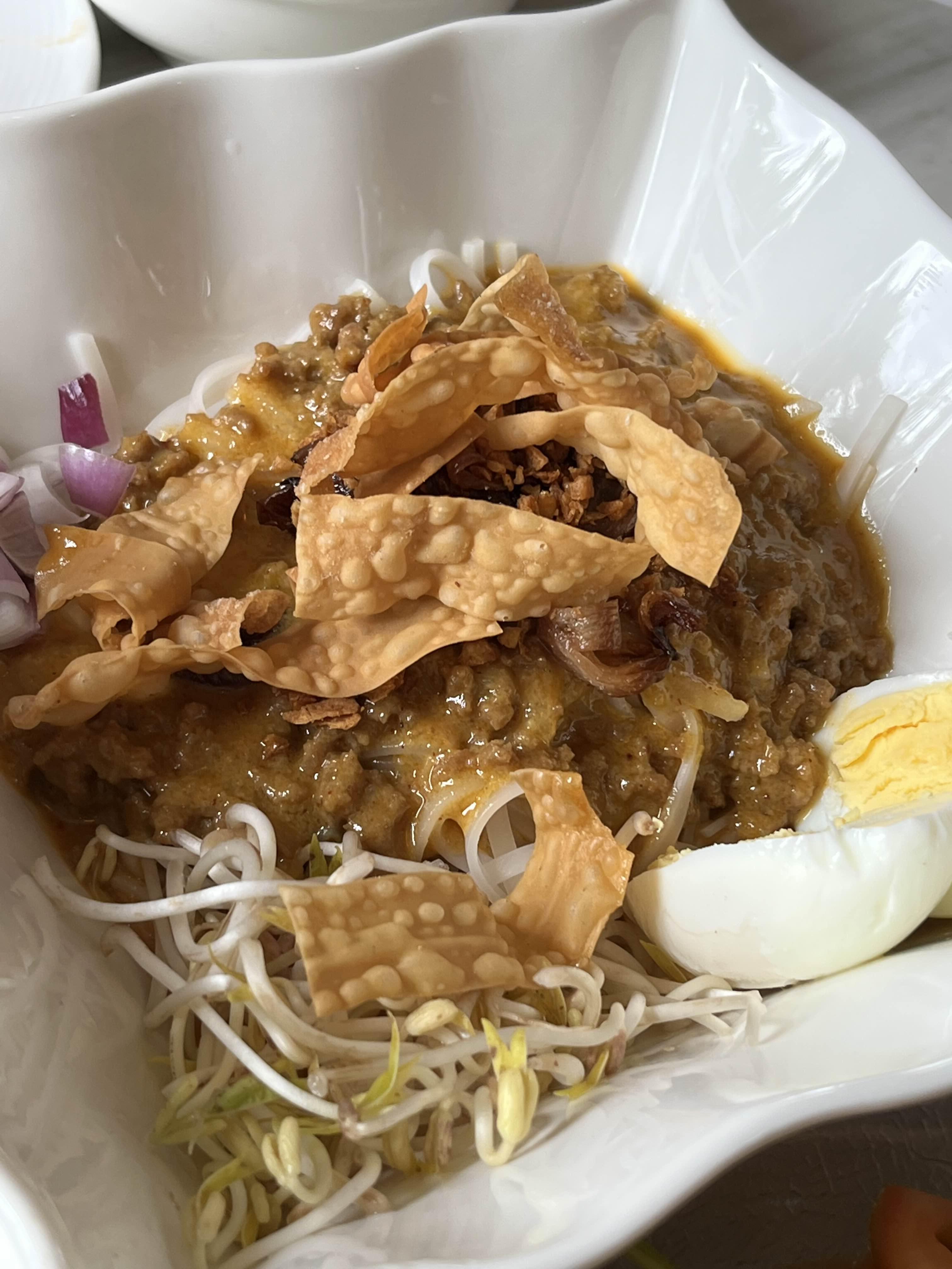 얇은 누들과 덜 익은 파파야, 당근, 양파 등의 야채와