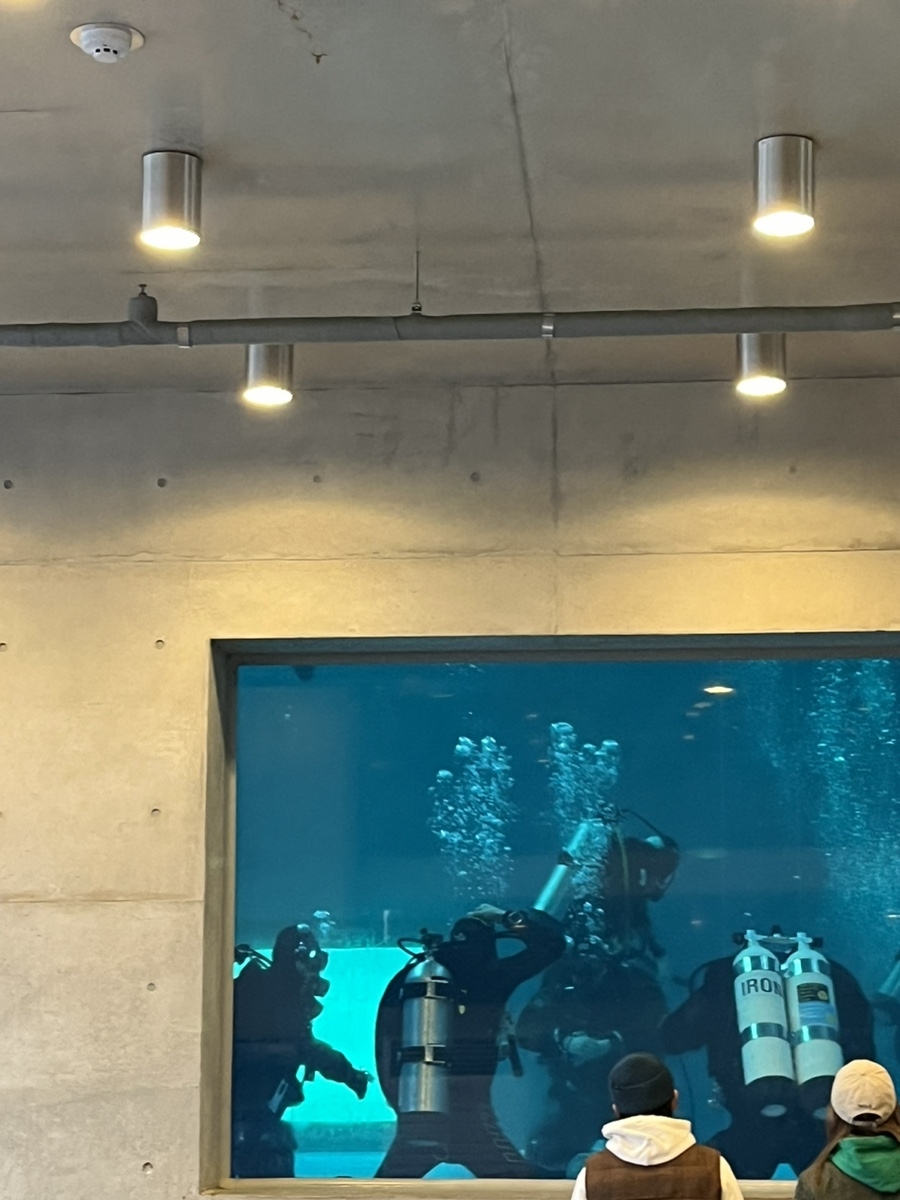 이 잠수풀장은 프리다이버들이 통창을 바라보고 찍은 사진을 통해 자주 접했다. 직접 가서 보니, 통창 말고 작은 창들에 들어오는 빛들이 정말 아름다웠다. 일부러 사진을 찍고 싶어 방문하는 사람들도 많이 보았다. 탈의실도 넓고, 샤워 시설도 넉넉했으나 수영복을 입고 풀장이 있는 3층까지 가기에는 조금 민망하고, 물기가 있어 추웠다. 풀장층에 화장실이 없는 것도 불편한 사항이었다.